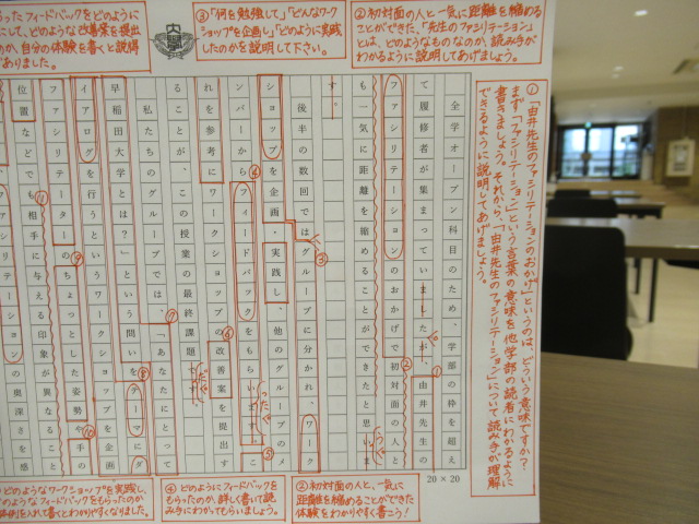 今日は、法学部の「新入生の文章クラス」に、四年生のハルさんが手伝いに来てくれました。