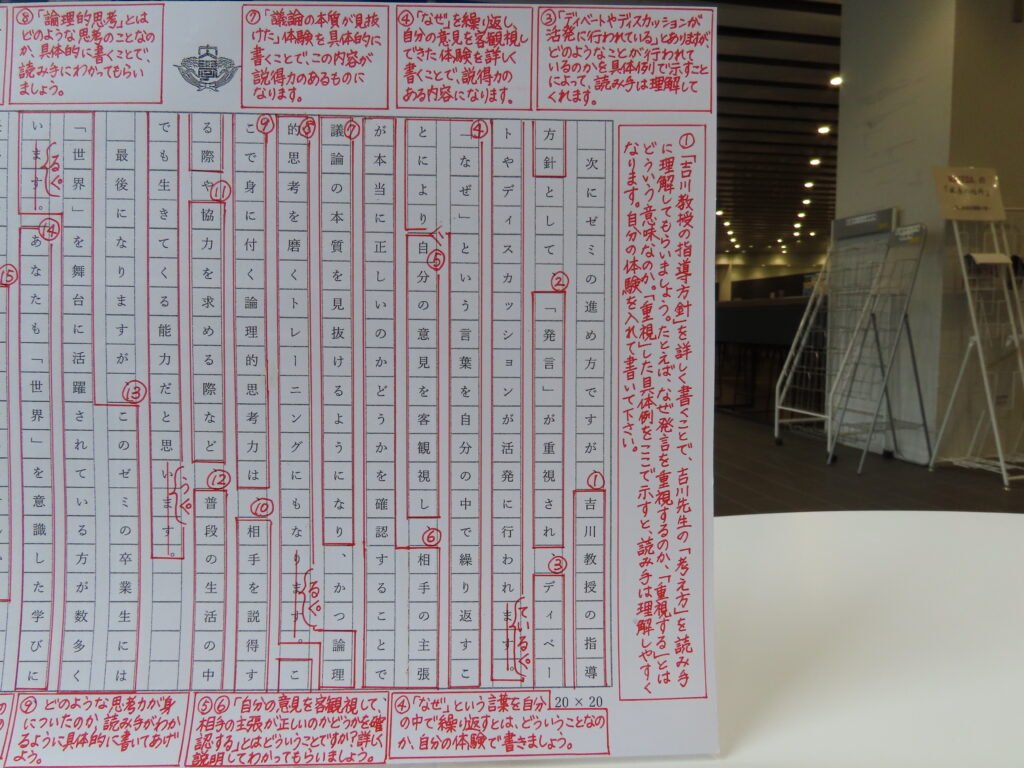 今日は、大学院生のユキさんが、一年生の「文章クラス」の手伝いに来てくれました。